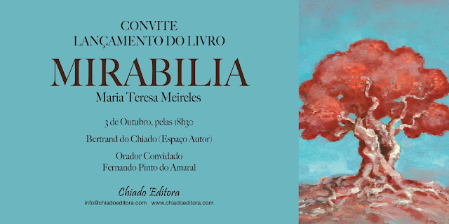 Ela, como sabem, é A Mulher da investigação séria e bonita, dos contos. É alguém que ouvimos falar e ficamos encantados com tanta sabedoria e delicadeza. Sim, ela parece uma fada delicada que nos conta histórias de mulheres e homens capazes das maiores atrocidades. No dia 3 de outubro vai lançar o seu primeiro livro na área da ficção - "Mirabilia" e eu estou muito curiosa para ver este cozinhado. Não duvido que seja divinal e que tenha o tempero certo!
